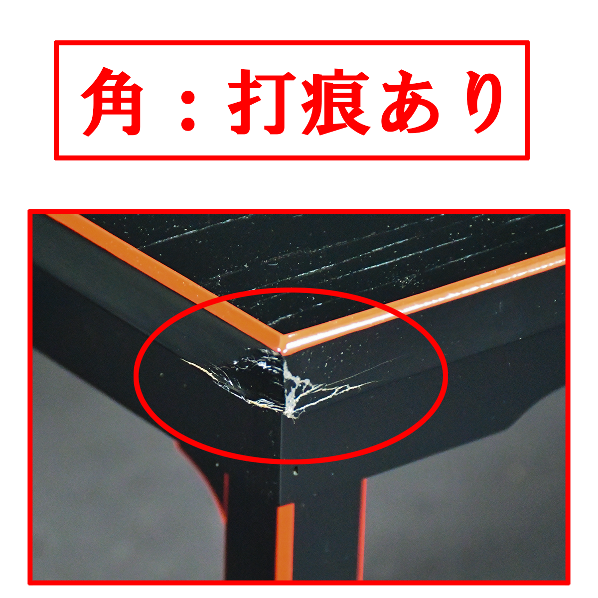 傷:天板角に打痕あり